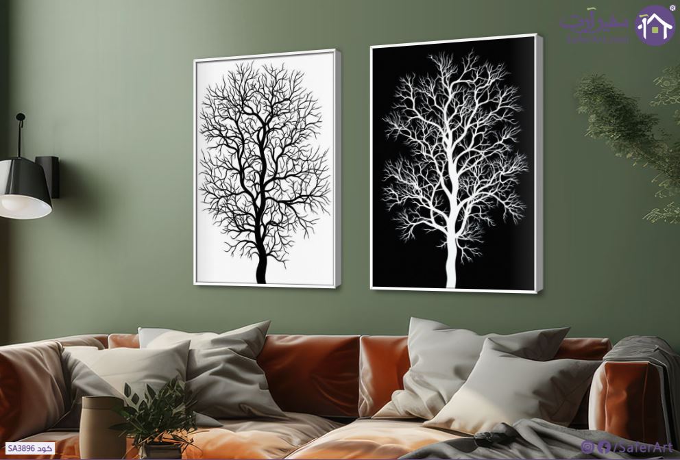 لوحات حائط مودرن لأشجار الغابة بالأبيض والأسود