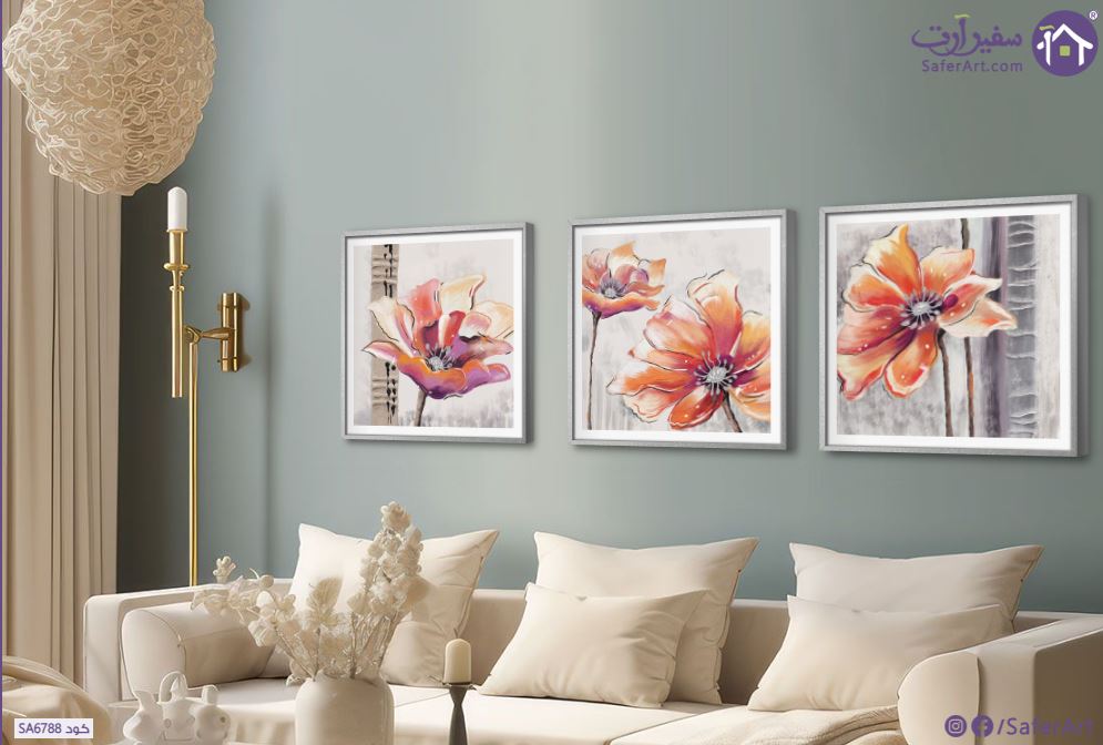 لوحات مودرن من ثلاث قطع من الورود بمزيج رائع من اللونين البرتقالى و الموف، و خلفية بالرمادى و الأبيض ., متوفر بمقاسات متعددة يمكنك اختيار او تغيير المقاس عند الطلب ,بتصميم مميز لـ تابلوهات مودرن, تابلوهات مودرن , لوحات فنية مودرن رومانسى, ورود - زهور - نباتات , التابلوه يغلب عليه الالوان برتقالى, رمادى, قوى و زاهى , و مصمم بالشكل التالى 3 قطع, متعدد القطع ( اى عدد ) , بالعرض, ببرواز, برواز SF9, مربع, مستطيل , مناسب لديكور حوائط غرفة الاستقبال, غرفة المعيشة, غرفة النوم, مدخل المنزل, مكاتب – شركات - اعمال , و هو يتميز بالسمات التالية : الوان زيتية - اكريليك, كلاسيك – نيو كلاسيك, لوحات فنية, مظهر بارز, مودرن , متوفر الان فى مصر و يأتى جاهز للتركيب مع دليل التركيب و اكسسوارات التركيب اللازمه
