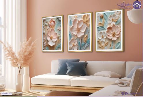 تابلوه مودرن كانفس ازهار تحاكى الرسم البارز, متعدد القطع, كل لوحة تركز على زهرة واحدة أو اثنتين، مع خلفيات وألوان متنوعة, تظهر تفاصيل دقيقة للبتلات، مع تجعدات وثنيات تعطي انطباعاً بأنها ثلاثية الأبعاد, تستخدم اللوحات ألواناً هادئة ومريحة للعين، مثل الوردي الخوخي، والأبيض، والأزرق، والأخضر, هذه اللوحات الفنية تتميز بالبساطة والجمال، وتعطي انطباعاً بالهدوء والاسترخاء. يمكن استخدامها كديكور في المنازل أو المكاتب، وتتناسب مع مختلف الأذواق., متوفر بمقاسات متعددة يمكنك اختيار او تغيير المقاس عند الطلب ,بتصميم مميز لـ تابلوهات مودرن, تابلوهات مودرن , لوحات فنية مودرن ورود - زهور - نباتات , التابلوه يغلب عليه الالوان ازرق - تركواز, اصفر, بينك – فوشيا, درجات الباستيل , و مصمم بالشكل التالى 3 قطع, متعدد القطع ( اى عدد ) , بالعرض, ببرواز, برواز SF9, برواز ذهبى, مستطيل , مناسب لديكور حوائط غرفة الاستقبال, غرفة المعيشة, غرفة النوم, مدخل المنزل, مكاتب – شركات - اعمال , و هو يتميز بالسمات التالية : الوان زيتية - اكريليك, لوحات فنية, مظهر بارز, مودرن , متوفر الان فى مصر و يأتى جاهز للتركيب مع دليل التركيب و اكسسوارات التركيب اللازمه