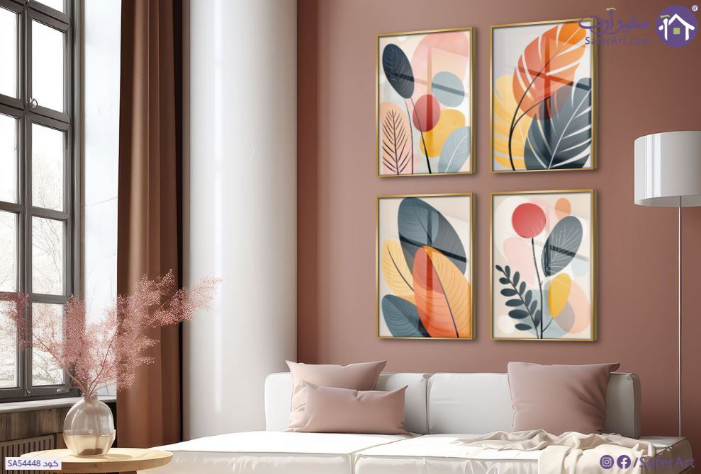 لوحات جدارية أوراق أشجار برسم تجريدي