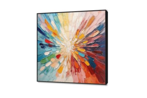تابلوه مودرن للوحة مليئة بالألوان الزاهية التي تتجه نحو المركز وكأنها انفجار من الالوان, بضربات فرشاه تبدوا و كأنها سميكة, مع تداخل الوان مميز., متوفر بمقاسات متعددة يمكنك اختيار او تغيير المقاس عند الطلب ,بتصميم مميز لـ تابلوهات مودرن, تابلوهات مودرن , لوحات فنية مودرن تجريدي , التابلوه يغلب عليه الالوان احمر - نبيتى, ازرق - تركواز, متعدد الالوان , و مصمم بالشكل التالى 1 قطعه , ببرواز, برواز اسود, مربع , مناسب لديكور حوائط غرفة المعيشة, مدخل المنزل, مكاتب – شركات - اعمال , و هو يتميز بالسمات التالية : الوان زيتية - اكريليك, تماثل - سيميترى, لوحات فنية, مودرن , متوفر الان فى مصر و يأتى جاهز للتركيب مع دليل التركيب و اكسسوارات التركيب اللازمه