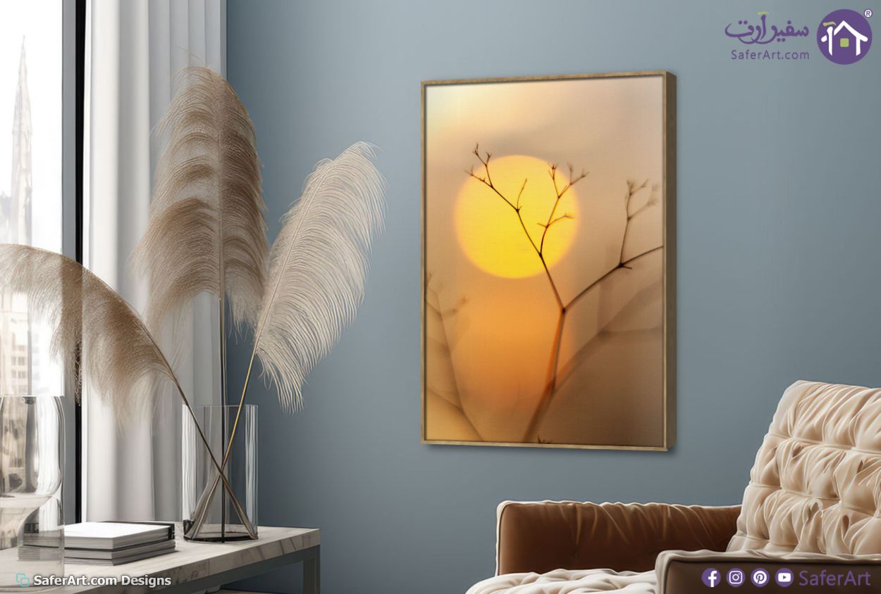 تعكس هذه اللوحة الفنية جمال الطبيعة بلمسة تجريدية ساحرة حيث يظهر قرص الشمس الذهبي الدافئ خلف اغصان رقيقة وجافة في مشهد يبعث على الهدوء والسكينة والراحة النفسية وهو ما يجعل تابلوه مودرن هذا قطعة ديكور استثنائية تتميز باسلوب فني ناعم يعتمد على تدرجات الالوان الدافئة والضبابية لتضفي عمقا وجاذبية خاصة على جدران منزلك العصري بلمسة ابداعية فريدة., متوفر بمقاسات متعددة يمكنك اختيار او تغيير المقاس عند الطلب ,بتصميم مميز لـ تابلوهات مودرن, تابلوهات مودرن , لوحات فنية مودرن مناظر طبيعية , التابلوه يغلب عليه الالوان اصفر, برتقالى, بنى - بيج , و مصمم بالشكل التالى 1 قطعه , بالطول, ببرواز, برواز خشبى, مستطيل , مناسب لديكور حوائط غرفة الاستقبال, غرفة المعيشة, غرفة النوم, مدخل المنزل, مكاتب – شركات - اعمال , و هو يتميز بالسمات التالية : بسيط و هادئ, صور فوتوغرافية, مودرن , متوفر الان فى مصر و يأتى جاهز للتركيب مع دليل التركيب و اكسسوارات التركيب اللازمه
