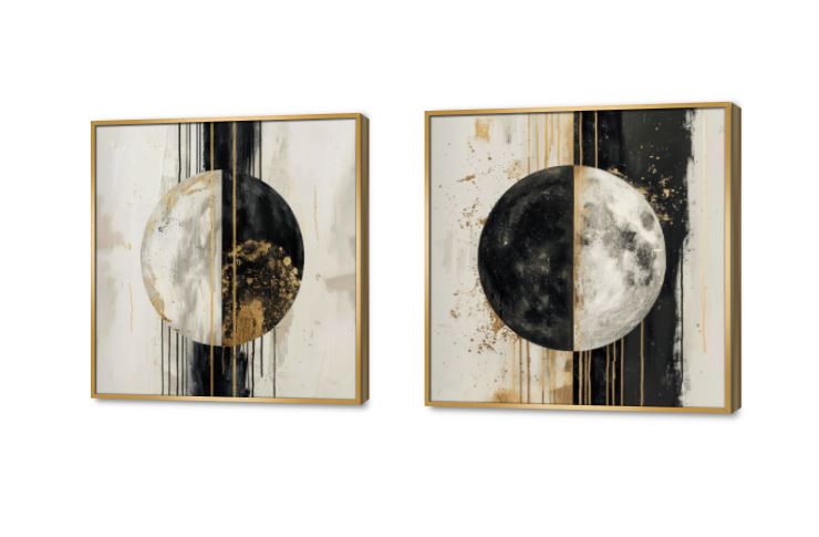 لوحة فنية تجريدية، على شكل دوائر متداخلة باللون الأبيض والأسود ورتوش باللون الذهبي، مطبوعة على قماش أبيض مزخرف، ديكور عصري جاهزة للتعليق. , متوفر بمقاسات متعددة يمكنك اختيار او تغيير المقاس عند الطلب ,بتصميم مميز لـ تابلوهات مودرن, تابلوهات مودرن , لوحات فنية مودرن اشكال هندسية و زخارف, تجريدي , التابلوه يغلب عليه الالوان ابيض - اوف وايت, اسود, اللون الواحد, رمادى, فضى – ذهبى , و مصمم بالشكل التالى 2 قطعه, متعدد القطع ( اى عدد ) , بالعرض, ببرواز, برواز ذهبى, مستطيل , مناسب لديكور حوائط غرفة الاستقبال, غرفة المعيشة, مدخل المنزل, مكاتب – شركات - اعمال , و هو يتميز بالسمات التالية : اشكال هندسية و زخارف, تماثل - سيميترى, دوائر, ديجيتال آرت, لوحات فنية, مودرن , متوفر الان فى مصر و يأتى جاهز للتركيب مع دليل التركيب و اكسسوارات التركيب اللازمه