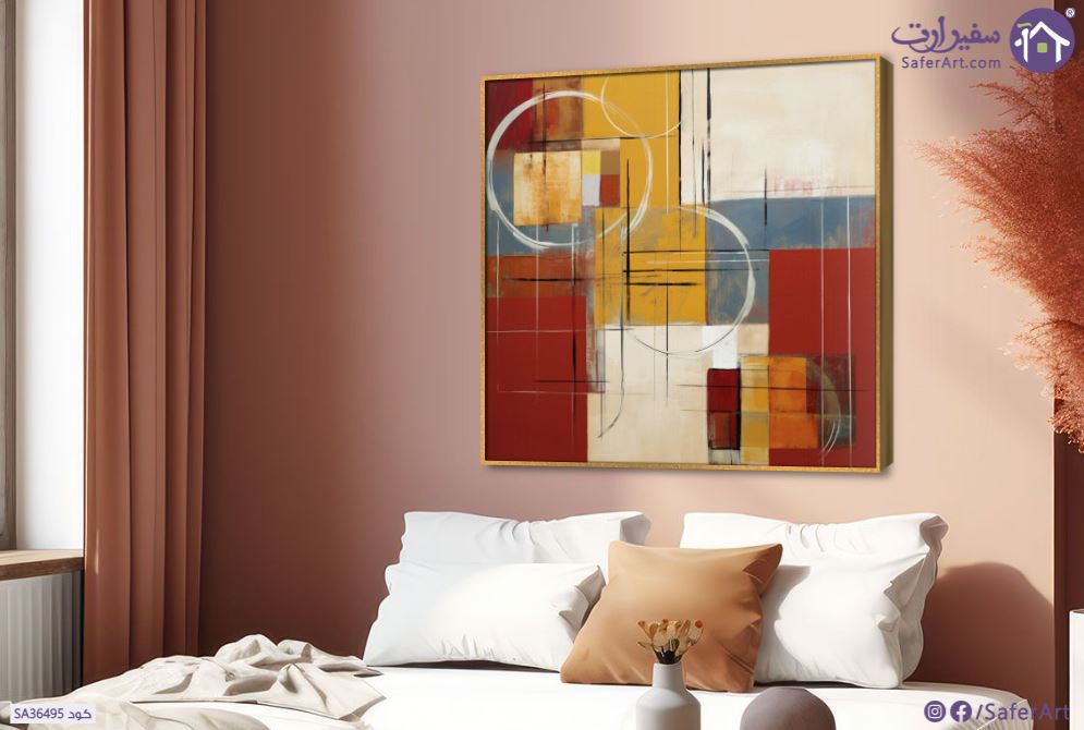 لوحات فنية رسم تجريدي ، مربعات متداخلة ودوائر وخطوط  بألوان متعددة تجمع بين اللون البرتقالي والبني والأصفروالبيج والرمادي., متوفر بمقاسات متعددة يمكنك اختيار او تغيير المقاس عند الطلب ,بتصميم مميز لـ تابلوهات مودرن, تابلوهات مودرن , لوحات فنية مودرن تجريدي , التابلوه يغلب عليه الالوان ابيض - اوف وايت, ازرق - تركواز, برتقالى , و مصمم بالشكل التالى 1 قطعه , ببرواز, برواز ذهبى, مربع , مناسب لديكور حوائط غرفة الاستقبال, غرفة المعيشة, مدخل المنزل, مكاتب – شركات - اعمال , و هو يتميز بالسمات التالية : الوان زيتية - اكريليك, لوحات فنية, مودرن , متوفر الان فى مصر و يأتى جاهز للتركيب مع دليل التركيب و اكسسوارات التركيب اللازمه