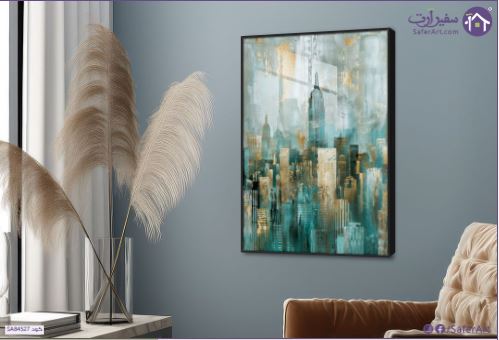 تابلوه فني تجريدى لمشهد المدينة، قد يكون مستوحى من مدينة نيويورك. تتضمن اللوحة مجموعة متنوعة من المباني، مع ناطحة سحاب أعلى تبرز في الوسط، برج إمباير ستيت. اللوحة تستخدم مجموعة من الألوان الباردة مثل الأزرق والأخضر الزمردي، مع تباين بين اللون الذهبي والبرونزي الدافئ, مع انطباعًا بالطلاء المتساقط أو التأثيرات الفنيه المتنوعة., متوفر بمقاسات متعددة يمكنك اختيار او تغيير المقاس عند الطلب ,بتصميم مميز لـ تابلوهات مودرن, تابلوهات مودرن , لوحات فنية مودرن تجريدي, اماكن و مدن و مباني , التابلوه يغلب عليه الالوان ازرق - تركواز, فضى – ذهبى , و مصمم بالشكل التالى 1 قطعه , بالطول, اكريليك, برواز اسود, مستطيل , مناسب لديكور حوائط غرفة الاستقبال, غرفة المعيشة, مدخل المنزل, مكاتب – شركات - اعمال , و هو يتميز بالسمات التالية : الوان زيتية - اكريليك, لوحات فنية, مودرن , متوفر الان فى مصر و يأتى جاهز للتركيب مع دليل التركيب و اكسسوارات التركيب اللازمه