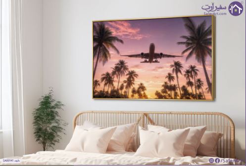 طائرة فوق مجموعة من أشجار النخيل, تُحلّق على ارتفاع منخفض فوق مجموعة من أشجار النخيل الكثيفة عند شروق الشمس بأشعتها الذهبية الأولى , السماءً مُلونة بألوان وردية وبرتقالية وأشجار النخيل التي تُشكل إطارًا طبيعيًا للطائرة، مُنفذًا بأسلوب التصوير الفوتوغرافي، ما يُعزز الإحساس بالسفر والاسترخاء والوجهات الاستوائية ويُوحي بفكرة الوصول إلى جنة استوائية وقضاء عطلة ممتعة., متوفر بمقاسات متعددة يمكنك اختيار او تغيير المقاس عند الطلب ,بتصميم مميز لـ تابلوهات مودرن, تابلوهات مودرن , لوحات فنية مودرن اعمال و شركات, سياحة و سفر, طائرات, نخيل, سيارات – دراجات - مواصلات, مناظر طبيعية , التابلوه يغلب عليه الالوان بينك – فوشيا, موف – ارجوانى , و مصمم بالشكل التالى 1 قطعه , بالعرض, ببرواز, برواز ذهبى, مستطيل , مناسب لديكور حوائط غرفة المعيشة, مكاتب – شركات - اعمال , و هو يتميز بالسمات التالية : صور فوتوغرافية, مودرن , متوفر الان فى مصر و يأتى جاهز للتركيب مع دليل التركيب و اكسسوارات التركيب اللازمه