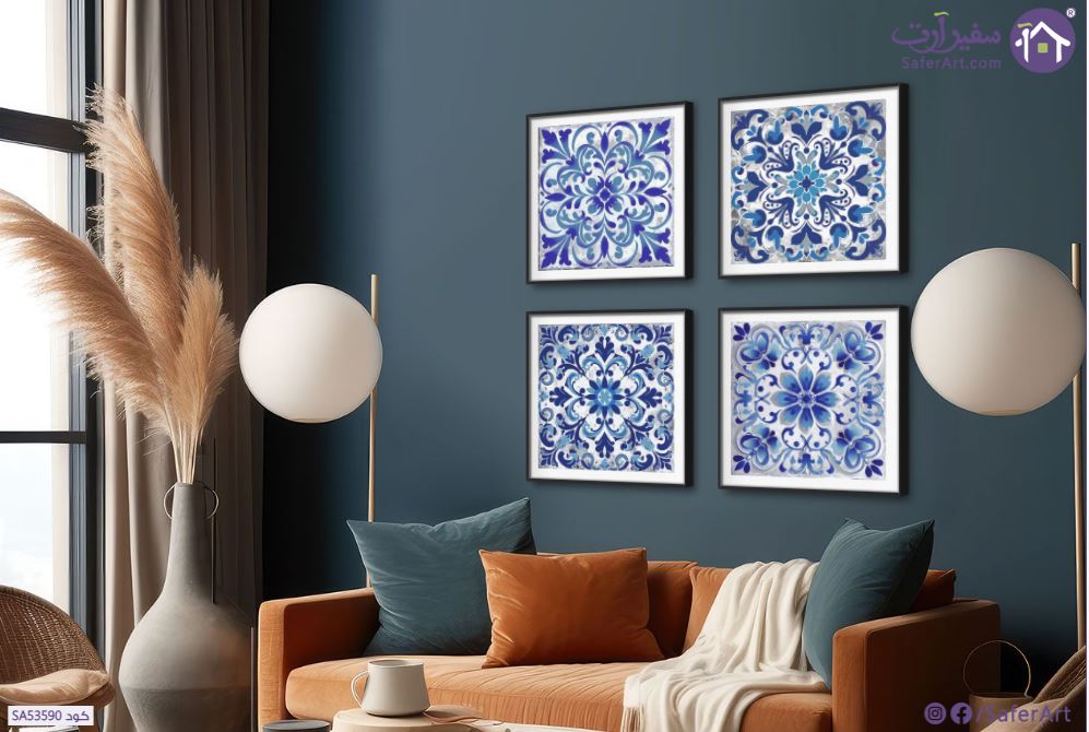 لوحات فنية مودرن، زخارف أرابيسك باللون الأزرق مكون من 4 قطع طباعة بأعلى جودة HD., متوفر بمقاسات متعددة يمكنك اختيار او تغيير المقاس عند الطلب ,بتصميم مميز لـ تابلوهات مودرن, تابلوهات مودرن , لوحات فنية مودرن زخارف اسلامية, اسلامى - ايات قرآنية و خط عربى, اشكال هندسية و زخارف , التابلوه يغلب عليه الالوان ابيض - اوف وايت, ازرق - تركواز , و مصمم بالشكل التالى 4 قطع, متعدد القطع ( اى عدد ) , ببرواز, برواز SF9, برواز اسود, مربع , مناسب لديكور حوائط غرفة الاستقبال, غرفة المعيشة, مدخل المنزل, مكاتب – شركات - اعمال , و هو يتميز بالسمات التالية : اشكال هندسية و زخارف, تماثل - سيميترى, ديجيتال آرت, مودرن , متوفر الان فى مصر و يأتى جاهز للتركيب مع دليل التركيب و اكسسوارات التركيب اللازمه