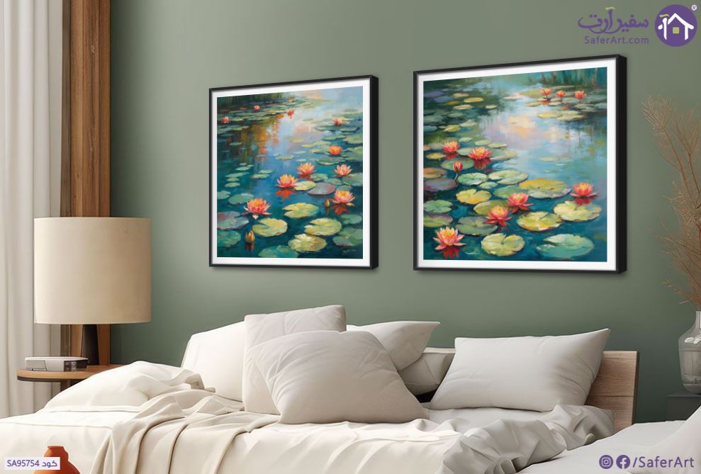 تابلوه مودرن يصور ببراعة مشهد ساحر لزنابق الماء الوردية وهي تطفو على سطح بحيرة هادئة مع اوراقها الخضراء بأسلوب فني انطباعي يعتمد على ضربات الفرشاة الجريئة والوان غنية تعكس الضوء والظلال على الماء مما يخلق لوحة فنية مفعمة بالحياة والسكينة والجمال الطبيعي الخلاب وتضيف لمسة من الهدوء والرقي على اي ديكور., متوفر بمقاسات متعددة يمكنك اختيار او تغيير المقاس عند الطلب ,بتصميم مميز لـ تابلوهات مودرن, تابلوهات مودرن , لوحات فنية مودرن حيوانات و طيور, شاطئ البحر, كائنات بحرية - اسماك, مناظر طبيعية, ورود - زهور - نباتات , التابلوه يغلب عليه الالوان اخضر - زيتى, ازرق - تركواز, برتقالى, متعدد الالوان , و مصمم بالشكل التالى 2 قطعه, متعدد القطع ( اى عدد ) , بالعرض, ببرواز, برواز SF9, برواز اسود, مستطيل , مناسب لديكور حوائط غرفة الاستقبال, غرفة المعيشة, غرفة النوم, غرفة بنات, مكاتب – شركات - اعمال , و هو يتميز بالسمات التالية : الوان زيتية - اكريليك, لوحات فنية, مظهر بارز, مودرن , متوفر الان فى مصر و يأتى جاهز للتركيب مع دليل التركيب و اكسسوارات التركيب اللازمه