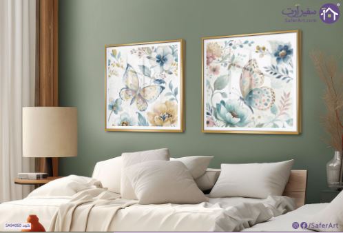 مجموعة تابلوهات مودرن مكونة من قطعتين تصور جمال الفراشات وسط حديقة من الزهور الملونة باسلوب الالوان المائية الذي يضفي لمسة فنية ناعمة وهادئة على التصميم برسوماته الرقيقة وتفاصيله الانيقة، مما يجعلها اضافة مثالية لاي ديكور يبحث عن لمسة من الطبيعة والجمال الممزوج بالبساطة والرقي لتزيين حوائط منزلك باجمل اللوحات الفنية., متوفر بمقاسات متعددة يمكنك اختيار او تغيير المقاس عند الطلب ,بتصميم مميز لـ تابلوهات مودرن, تابلوهات مودرن , لوحات فنية مودرن حيوانات و طيور, فراشات, ورود - زهور - نباتات , التابلوه يغلب عليه الالوان ابيض - اوف وايت, اخضر - زيتى, درجات الباستيل , و مصمم بالشكل التالى 2 قطعه, متعدد القطع ( اى عدد ) , اكريليك, بالعرض, ببرواز, برواز SF9, برواز ذهبى, مستطيل , مناسب لديكور حوائط غرفة الاستقبال, غرفة المعيشة, غرفة النوم, غرفة بنات, مدخل المنزل , و هو يتميز بالسمات التالية : الوان مائية, بسيط و هادئ, لوحات فنية, مودرن , متوفر الان فى مصر و يأتى جاهز للتركيب مع دليل التركيب و اكسسوارات التركيب اللازمه