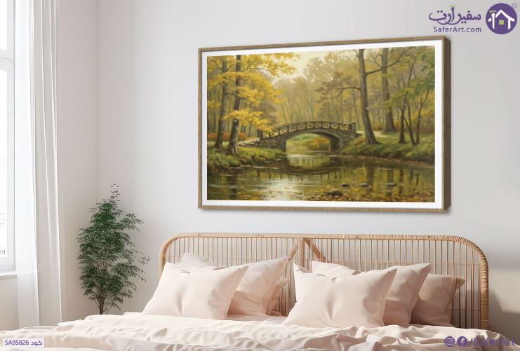 تابلوه مودرن لمنظر طبيعي خريفي وجسر ساحر