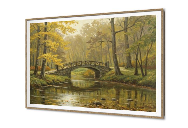 تابلوه مودرن لمنظر طبيعي خريفي وجسر ساحر