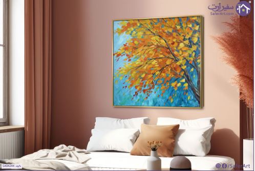 تابلوه مودرن يجسد ببراعة مشهد شجرة خريفية تتراقص اوراقها الصفراء والبرتقالية بأسلوب فني تجريدي انطباعي يعتمد على ضربات الفرشاة السميكة والبارزة التي تخلق ملمسا حيا على سطح اللوحة، حيث تتناغم الالوان الدافئة مع الخلفية الزرقاء الهادئة لتضيف قطعة فنية مليئة بالحياة والطاقة والدفء الى اي مساحة و تضفي عليها لمسة من الاناقة و الجمال., متوفر بمقاسات متعددة يمكنك اختيار او تغيير المقاس عند الطلب ,بتصميم مميز لـ تابلوهات مودرن, تابلوهات مودرن , لوحات فنية مودرن اشجار, مناظر طبيعية , التابلوه يغلب عليه الالوان ازرق - تركواز, اصفر, برتقالى, قوى و زاهى , و مصمم بالشكل التالى 1 قطعه , ببرواز, برواز ذهبى, مربع , مناسب لديكور حوائط غرفة الاستقبال, غرفة المعيشة, غرفة النوم, مدخل المنزل, مكاتب – شركات - اعمال , و هو يتميز بالسمات التالية : الوان زيتية - اكريليك, لوحات فنية, مظهر بارز, مودرن , متوفر الان فى مصر و يأتى جاهز للتركيب مع دليل التركيب و اكسسوارات التركيب اللازمه