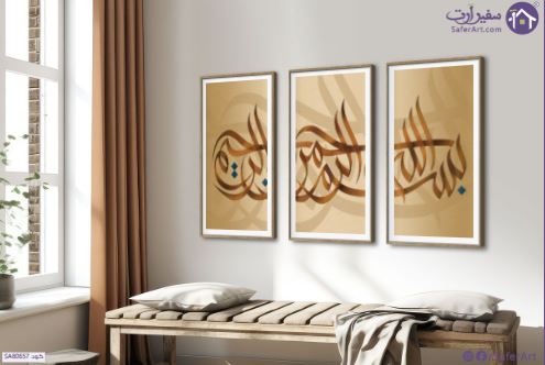 تابلوه مودرن ( البسمله ) بخط عربى مميز متعدد القطع, متوفر بمقاسات متعددة يمكنك اختيار او تغيير المقاس عند الطلب ,بتصميم مميز لـ تابلوهات مودرن, تابلوهات مودرن , لوحات فنية مودرن ايات قرآنية و خط عربى, اسلامى - ايات قرآنية و خط عربى , التابلوه يغلب عليه الالوان بنى - بيج, احمر - نبيتى , و مصمم بالشكل التالى 3 قطع, متعدد القطع ( اى عدد ) , بالعرض, ببرواز, برواز SF9, برواز خشبى, مستطيل , مناسب لديكور حوائط غرفة الاستقبال, غرفة المعيشة, مدخل المنزل, مكاتب – شركات - اعمال , و هو يتميز بالسمات التالية : ديجيتال آرت, كتابات و حروف, مودرن , متوفر الان فى مصر و يأتى جاهز للتركيب مع دليل التركيب و اكسسوارات التركيب اللازمه