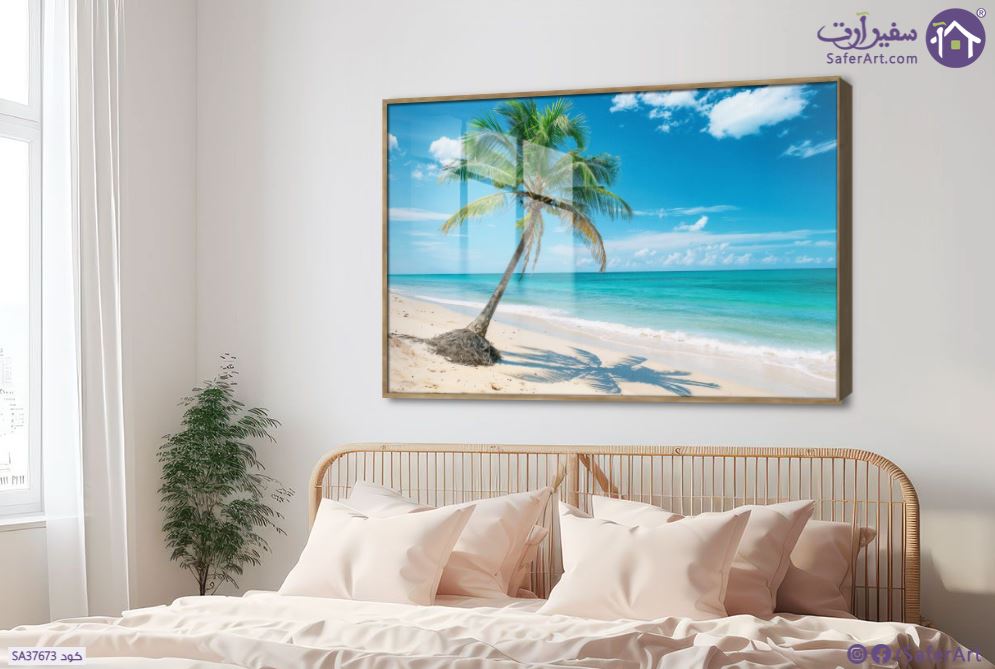 تابلوه مودرن لمنظر طبيعي لشاطئ استوائي خلاب