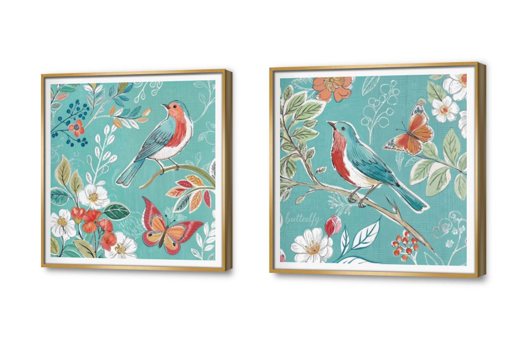 تابلوهات ورود وأغصان وعصافير وفراشات