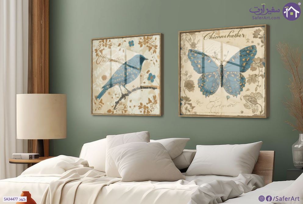 لوحات ديكور لغرف الأطفال والبنات ، لعصافير وفراشات باللون الأخضر على فروع شجر باللون الذهبي بتصميم هادئ ورقيق.., متوفر بمقاسات متعددة يمكنك اختيار او تغيير المقاس عند الطلب ,بتصميم مميز لـ تابلوهات مودرن, تابلوهات مودرن , لوحات فنية مودرن طيور, فراشات, حيوانات و طيور , التابلوه يغلب عليه الالوان ازرق - تركواز, بنى - بيج , و مصمم بالشكل التالى 2 قطعه, متعدد القطع ( اى عدد ) , اكريليك, بالعرض, ببرواز, برواز خشبى, مستطيل , مناسب لديكور حوائط غرفة الاستقبال, غرفة المعيشة, غرفة النوم , و هو يتميز بالسمات التالية : عتيق - فينتاج, لوحات فنية, مودرن , متوفر الان فى مصر و يأتى جاهز للتركيب مع دليل التركيب و اكسسوارات التركيب اللازمه