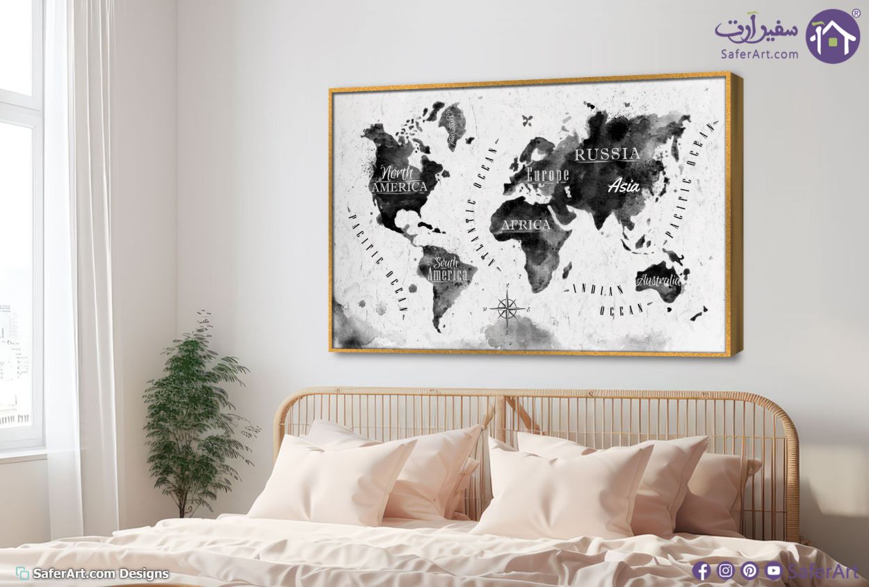 تصميم خريطة العالم بالأبيض والأسود لوحات حائط مودرن
