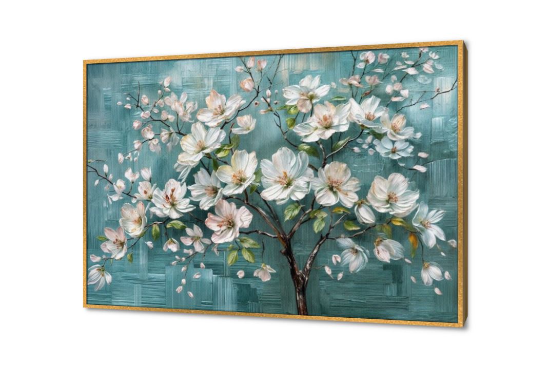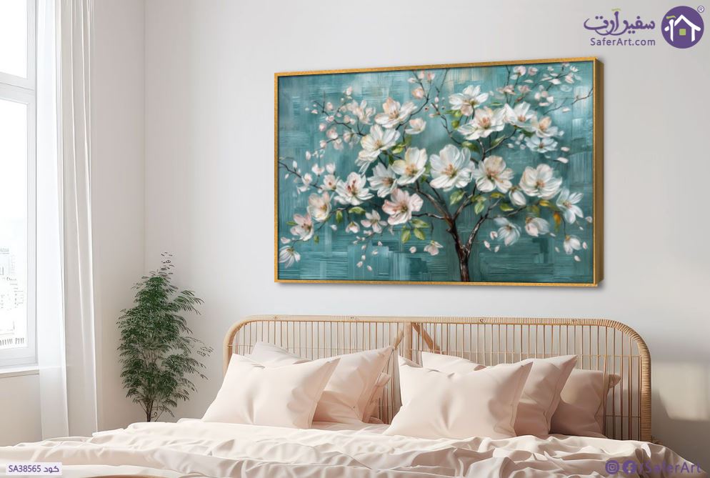 لوحة فنية منظر طبيعية لشجرة مليئة بالورد الرقيقة البيضاء على خلفية زرقاء بتصميم مودرن مميز لمحبي وعشاق اللون الأزرق., متوفر بمقاسات متعددة يمكنك اختيار او تغيير المقاس عند الطلب ,بتصميم مميز لـ تابلوهات مودرن, تابلوهات مودرن , لوحات فنية مودرن ورود - زهور - نباتات , التابلوه يغلب عليه الالوان ابيض - اوف وايت, ازرق - تركواز , و مصمم بالشكل التالى 1 قطعه , بالعرض, ببرواز, برواز ذهبى, مستطيل , مناسب لديكور حوائط غرفة الاستقبال, غرفة المعيشة, غرفة نوم , و هو يتميز بالسمات التالية : الوان زيتية - اكريليك, لوحات فنية, مودرن , متوفر الان فى مصر و يأتى جاهز للتركيب مع دليل التركيب و اكسسوارات التركيب اللازمه