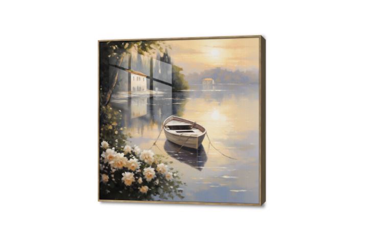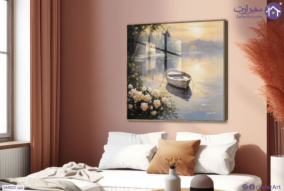 تابلوه مودرن بحيره و مركب صغير
