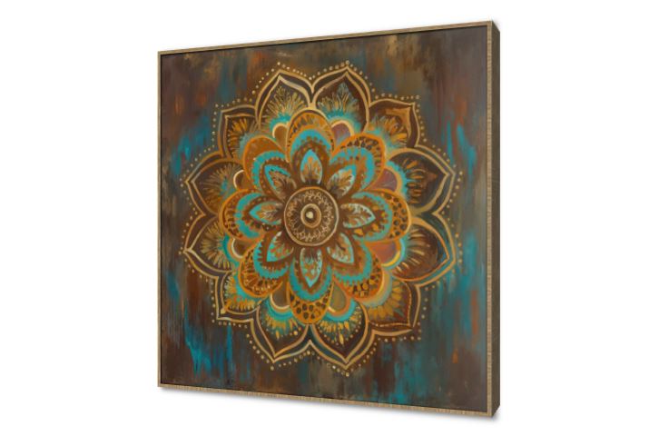 لوحات ديكور تجسد رسمة ماندالا مذهلة بتفاصيل دقيقة وألوان غنية تجمع بين درجات البني الدافئ والتركواز الحيوي مع لمسات ذهبية براقة، حيث تم تصميمها بأسلوب بوهيمي فني عتيق يبعث على الهدوء والتأمل ويضيف لمسة من الأناقة الروحانية والجمال لديكور منزلك لتكون قطعة مركزية تخطف الأنظار وتكمل ديكورك بأسلوب فريد., متوفر بمقاسات متعددة يمكنك اختيار او تغيير المقاس عند الطلب ,بتصميم مميز لـ تابلوهات مودرن, تابلوهات مودرن , لوحات فنية مودرن اسلامى - ايات قرآنية و خط عربى, اشكال هندسية و زخارف, زخارف اسلامية, ورود - زهور - نباتات , التابلوه يغلب عليه الالوان ازرق - تركواز, الوان داكنة, برتقالى, بنى - بيج, فضى – ذهبى, متعدد الالوان , و مصمم بالشكل التالى 1 قطعه , ببرواز, برواز خشبى, مربع , مناسب لديكور حوائط غرفة الاستقبال, غرفة المعيشة, مدخل المنزل, مكاتب – شركات - اعمال , و هو يتميز بالسمات التالية : اشكال هندسية و زخارف, الوان زيتية - اكريليك, تماثل - سيميترى, دوائر, عتيق - فينتاج, كلاسيك – نيو كلاسيك, لوحات فنية, مودرن , متوفر الان فى مصر و يأتى جاهز للتركيب مع دليل التركيب و اكسسوارات التركيب اللازمه
