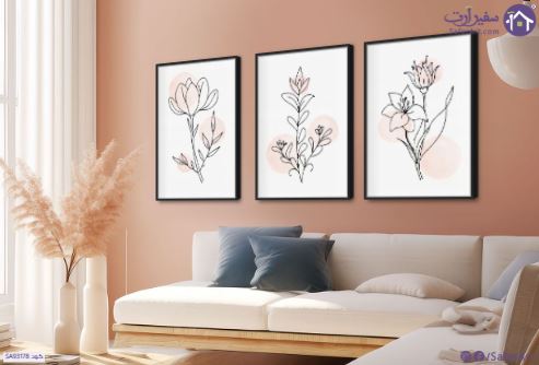 تابلوهات بسيطة ابيض و اسود على خلفية بسيطة، يتكون التابلوه من ثلاث لوحات فنية متناسقة، كل منها يصور زهرة واحدة أو مجموعة أزهار بنمط الرسم الخطي البسيط والواضح، مع خلفية بيضاء تتخللها دوائر وردية فاتحة اللون، مما يضفي لمسة من النعومة والدفء على التصميم، ويعكس الأسلوب الفني الحديث الذي يركز على التبسيط والأناقة في التعبير عن الجمال الطبيعي., متوفر بمقاسات متعددة يمكنك اختيار او تغيير المقاس عند الطلب ,بتصميم مميز لـ تابلوهات مودرن, تابلوهات مودرن , لوحات فنية مودرن ورود - زهور - نباتات , التابلوه يغلب عليه الالوان ابيض - اوف وايت, بينك – فوشيا , و مصمم بالشكل التالى 3 قطع, متعدد القطع ( اى عدد ) , بالعرض, ببرواز, برواز اسود, مستطيل , مناسب لديكور حوائط غرفة الاستقبال, غرفة المعيشة, غرفة النوم, غرفة بنات , و هو يتميز بالسمات التالية : الستريشن - فيكتور, بسيط و هادئ, بوهو ستايل, ديجيتال آرت, لوحات فنية, مودرن , متوفر الان فى مصر و يأتى جاهز للتركيب مع دليل التركيب و اكسسوارات التركيب اللازمه