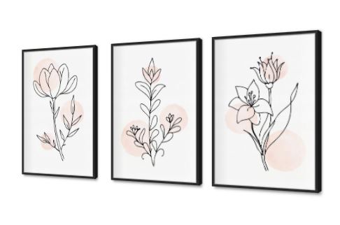 تابلوهات بسيطة ابيض و اسود على خلفية بسيطة، يتكون التابلوه من ثلاث لوحات فنية متناسقة، كل منها يصور زهرة واحدة أو مجموعة أزهار بنمط الرسم الخطي البسيط والواضح، مع خلفية بيضاء تتخللها دوائر وردية فاتحة اللون، مما يضفي لمسة من النعومة والدفء على التصميم، ويعكس الأسلوب الفني الحديث الذي يركز على التبسيط والأناقة في التعبير عن الجمال الطبيعي., متوفر بمقاسات متعددة يمكنك اختيار او تغيير المقاس عند الطلب ,بتصميم مميز لـ تابلوهات مودرن, تابلوهات مودرن , لوحات فنية مودرن ورود - زهور - نباتات , التابلوه يغلب عليه الالوان ابيض - اوف وايت, بينك – فوشيا , و مصمم بالشكل التالى 3 قطع, متعدد القطع ( اى عدد ) , بالعرض, ببرواز, برواز اسود, مستطيل , مناسب لديكور حوائط غرفة الاستقبال, غرفة المعيشة, غرفة النوم, غرفة بنات , و هو يتميز بالسمات التالية : الستريشن - فيكتور, بسيط و هادئ, بوهو ستايل, ديجيتال آرت, لوحات فنية, مودرن , متوفر الان فى مصر و يأتى جاهز للتركيب مع دليل التركيب و اكسسوارات التركيب اللازمه