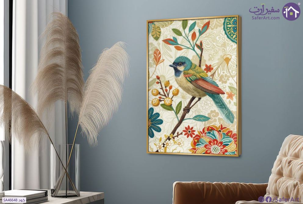 لوحات حائط لطيور ملونة على أغصان الزهور
