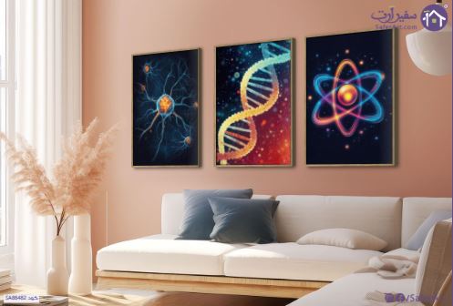 تابلوه مودرن كانفس احياء - فيزياء - كيمياء, ثلاث لوحات فنية، الأولى تعرض خلية عصبية بتشعباتها، والثانية تصور جزيء الحمض النووي (DNA) الحلزوني المزدوج، أما الثالثة فتُظهر نموذجًا لذرة مع مداراتها الإلكترونية. تتباين ألوان اللوحات بين الأزرق الداكن والألوان الزاهية كالبرتقالي والأصفر والأحمر، مع خلفيات سوداء تبرز الأشكال. تُركز اللوحات على تمثيل مفاهيم علمية أساسية في علم الأحياء والفيزياء والكيمياء, استخدام الألوان الزاهية على خلفية سوداء يُعطي تأثيرًا بصريًا قويًا وجذابًا، ويُضفي لمسة من الخيال العلمي., متوفر بمقاسات متعددة يمكنك اختيار او تغيير المقاس عند الطلب ,بتصميم مميز لـ تابلوهات مودرن, تابلوهات مودرن , لوحات فنية مودرن اعمال و شركات, علوم, عيادات - طبيه - مستشفيات , التابلوه يغلب عليه الالوان ازرق - تركواز, اسود, اصفر, الوان داكنة, برتقالى , و مصمم بالشكل التالى 3 قطع, متعدد القطع ( اى عدد ) , بالعرض, ببرواز, برواز خشبى, مستطيل , مناسب لديكور حوائط مكاتب – شركات - اعمال , و هو يتميز بالسمات التالية : ديجيتال آرت, مودرن, نيون ستايل , متوفر الان فى مصر و يأتى جاهز للتركيب مع دليل التركيب و اكسسوارات التركيب اللازمه