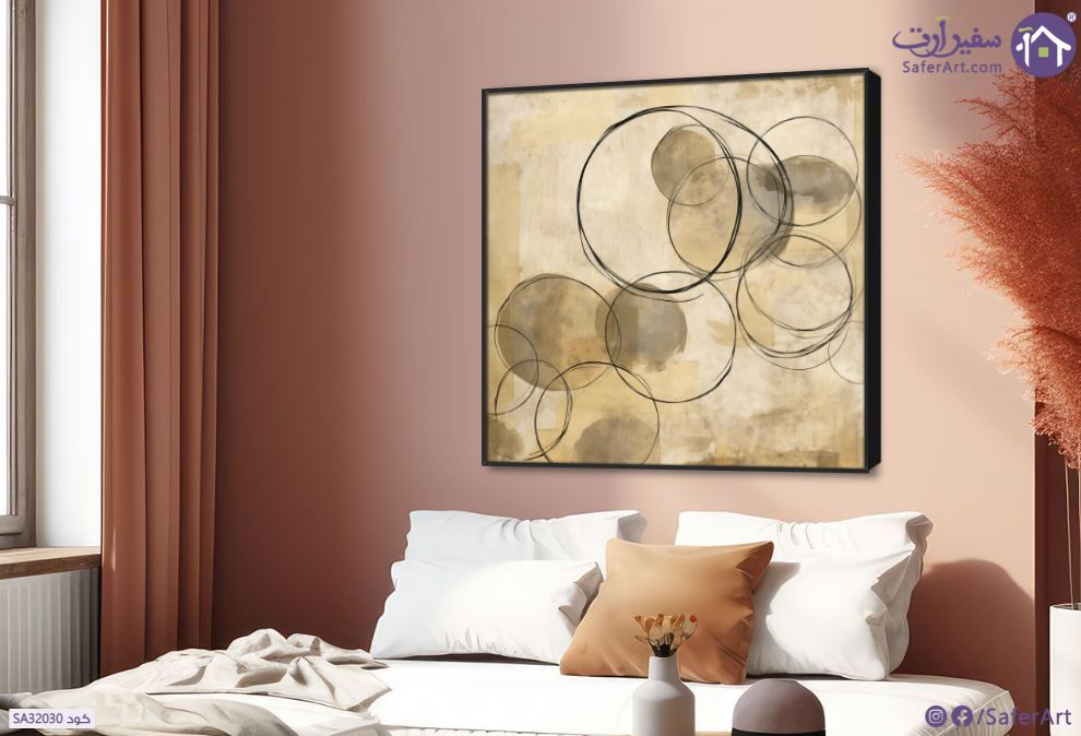 لوحة فنية رسم لمجموعة من الدوائر المتداخلة باللونين الأسود والبيج برسم تجريدي مودرن بتصميم هادئ وبسيط, متوفر بمقاسات متعددة يمكنك اختيار او تغيير المقاس عند الطلب ,بتصميم مميز لـ تابلوهات مودرن, تابلوهات مودرن , لوحات فنية مودرن اشكال هندسية و زخارف , التابلوه يغلب عليه الالوان اسود, بنى - بيج , و مصمم بالشكل التالى 1 قطعه , ببرواز, برواز اسود, مربع , مناسب لديكور حوائط غرفة المعيشة, مدخل المنزل, مكاتب – شركات - اعمال , و هو يتميز بالسمات التالية : اشكال هندسية و زخارف, الوان زيتية - اكريليك, دوائر, لوحات فنية , متوفر الان فى مصر و يأتى جاهز للتركيب مع دليل التركيب و اكسسوارات التركيب اللازمه