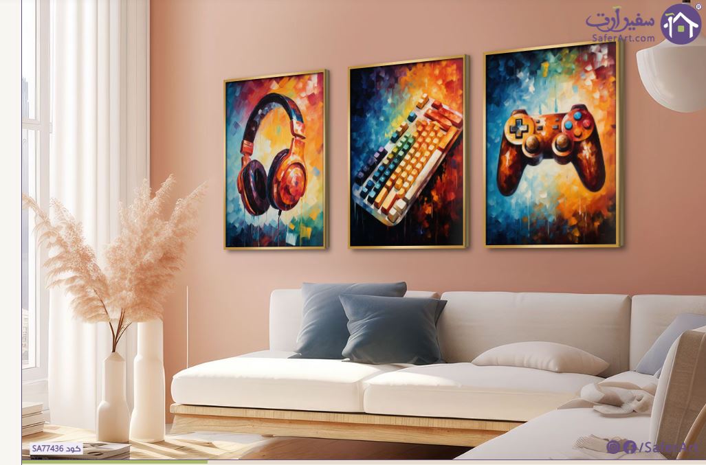 تابلوه مودرن 3 قطع لمحبى الالعاب الالكترونية بالوان زاهية