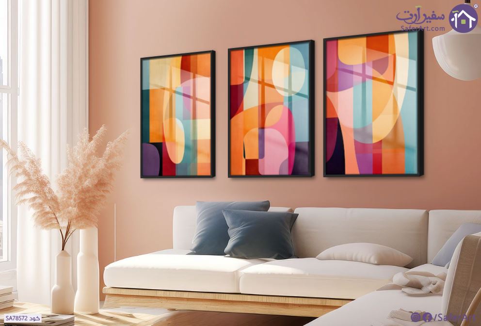 لوحات فنية تجريدية بألوان زاهية وأشكال هندسية
