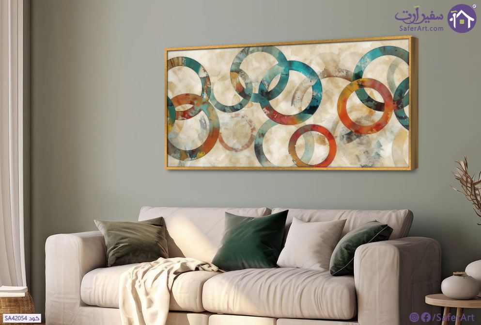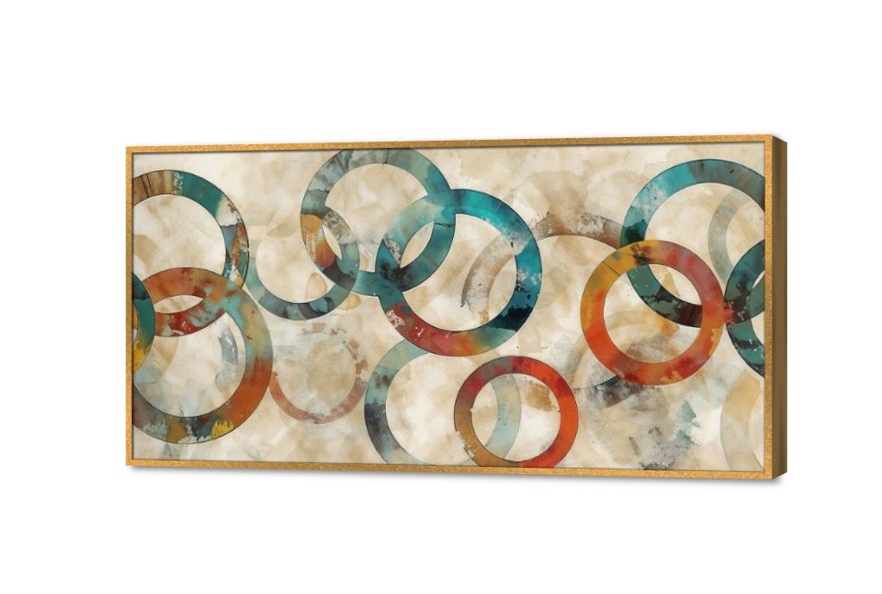 لوحات ديكور، مجموعة من الرسومات والأشكال الهندسية على شكل دوائر متداخلة وملونة بألوان متعددة زاهية مليئة بالبهجة والحيوية., متوفر بمقاسات متعددة يمكنك اختيار او تغيير المقاس عند الطلب ,بتصميم مميز لـ تابلوهات مودرن, تابلوهات مودرن , لوحات فنية مودرن اشكال هندسية و زخارف , التابلوه يغلب عليه الالوان احمر - نبيتى, اخضر - زيتى, بنى - بيج , و مصمم بالشكل التالى 1 قطعه , بالعرض, ببرواز, برواز ذهبى, مستطيل , مناسب لديكور حوائط غرفة الاستقبال, غرفة المعيشة, مدخل المنزل, مكاتب – شركات - اعمال , و هو يتميز بالسمات التالية : اشكال هندسية و زخارف, الوان زيتية - اكريليك, لوحات فنية, مودرن , متوفر الان فى مصر و يأتى جاهز للتركيب مع دليل التركيب و اكسسوارات التركيب اللازمه