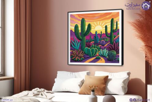 تابلوه منظر طبيعى للصبار بالوان زاهية