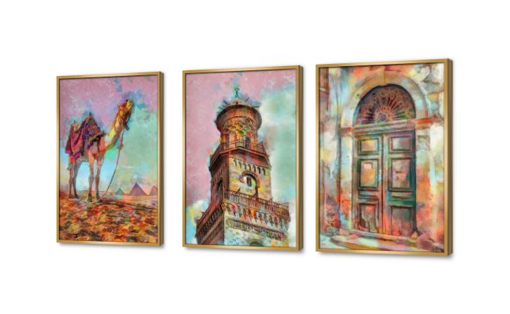 تابلوه مودرن و لوحات فنية لمشاهد من الاماكن المصرية المتنوعه مرسوم باسلوب الالوان المائيه الزاهية, متوفر بمقاسات متعددة يمكنك اختيار او تغيير المقاس عند الطلب ,بتصميم مميز لـ تابلوهات مودرن, تابلوهات مودرن , لوحات فنية مودرن اسلامى - ايات قرآنية و خط عربى, اماكن اسلامية و عربية, اماكن و مدن و مباني, مصر , التابلوه يغلب عليه الالوان متعدد الالوان , و مصمم بالشكل التالى 3 قطع, متعدد القطع ( اى عدد ) , بالطول, بالعرض, مستطيل , مناسب لديكور حوائط غرفة المعيشة, غرفة الاستقبال, غرفة النوم, مدخل المنزل, مكاتب – شركات - اعمال , و هو يتميز بالسمات التالية : الوان مائية, ديجيتال آرت, لوحات فنية, مودرن , متوفر الان فى مصر و يأتى جاهز للتركيب مع دليل التركيب و اكسسوارات التركيب اللازمه