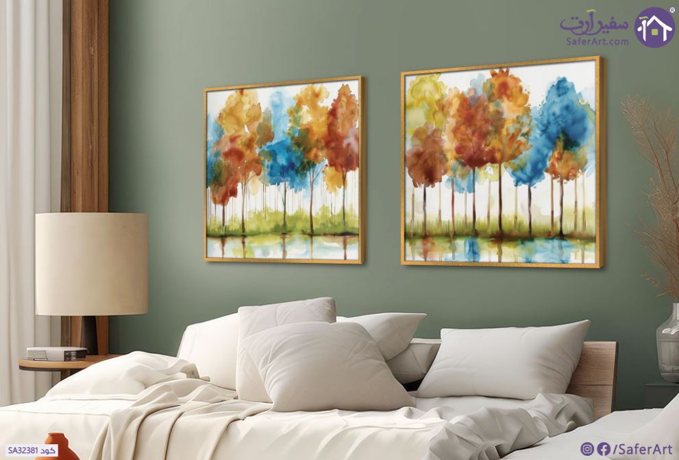 لوحات ديكور ، رسم لأشجار غابات ملونة بألوان زاهية ومبهجة تجمع بين الأزرق والأصفر والأخضر والبني برسم تجريدي مودرن, متوفر بمقاسات متعددة يمكنك اختيار او تغيير المقاس عند الطلب ,بتصميم مميز لـ تابلوهات مودرن, تابلوهات مودرن , لوحات فنية مودرن اشجار, مناظر طبيعية , التابلوه يغلب عليه الالوان اخضر - زيتى, ازرق - تركواز, اصفر , و مصمم بالشكل التالى 2 قطعه, متعدد القطع ( اى عدد ) , بالعرض, ببرواز, برواز ذهبى, مستطيل , مناسب لديكور حوائط غرفة الاستقبال, غرفة المعيشة, مدخل المنزل, مكاتب – شركات - اعمال , و هو يتميز بالسمات التالية : الوان مائية, لوحات فنية, مودرن , متوفر الان فى مصر و يأتى جاهز للتركيب مع دليل التركيب و اكسسوارات التركيب اللازمه