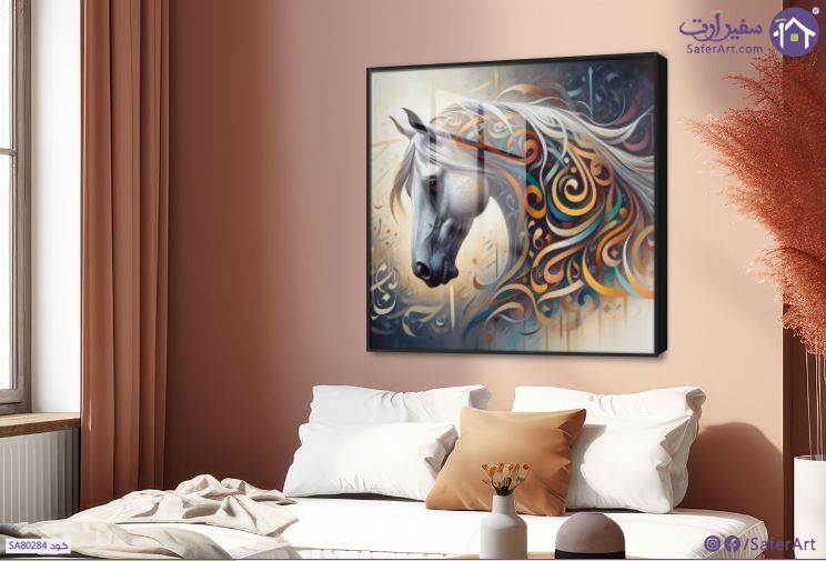 تابلوه مودرن لحصان عربى مع تصميم مستوحى من الحروف العربيه المتداخله بالوان متنوعة برسم فنى مميز, متوفر بمقاسات متعددة يمكنك اختيار او تغيير المقاس عند الطلب ,بتصميم مميز لـ تابلوهات مودرن, تابلوهات مودرن , لوحات فنية مودرن احصنه, حيوانات و طيور , التابلوه يغلب عليه الالوان بنى - بيج, متعدد الالوان , و مصمم بالشكل التالى 1 قطعه , مربع, اكريليك, ببرواز, برواز اسود , مناسب لديكور حوائط غرفة الاستقبال, غرفة المعيشة, مدخل المنزل , و هو يتميز بالسمات التالية : الستريشن - فيكتور, لوحات فنية, مودرن , متوفر الان فى مصر و يأتى جاهز للتركيب مع دليل التركيب و اكسسوارات التركيب اللازمه