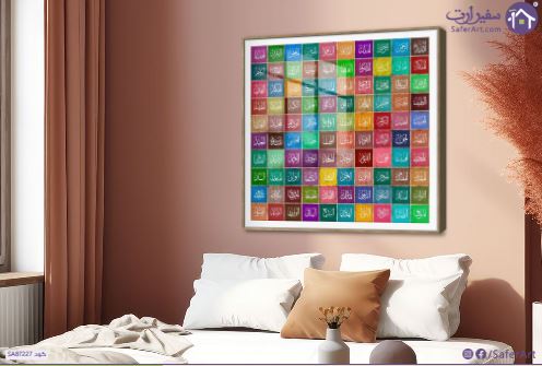 تابلوه حائط اسماء الله الحسنى كاملة متعددة الالوان