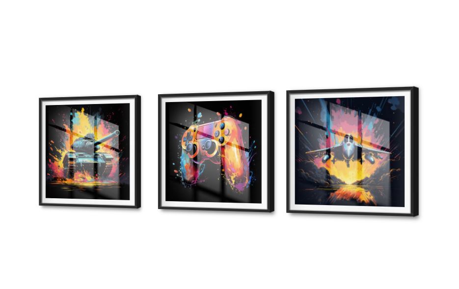تابلوه مودرن بالوان حيويه و زاهيه من 3 قطع لمحبى الالعاب الالكترونية و البلايستيشن لذراع تحكم و طائره و دبابه برسم ديجيتال مميز, متوفر بمقاسات متعددة يمكنك اختيار او تغيير المقاس عند الطلب ,بتصميم مميز لـ تابلوهات مودرن, تابلوهات مودرن , لوحات فنية مودرن اكشن - مغامرات, جيمنج - العاب و تسليه , التابلوه يغلب عليه الالوان اسود, اللون الواحد, الوان داكنة, برتقالى , و مصمم بالشكل التالى 3 قطع, متعدد القطع ( اى عدد ) , اكريليك, بالعرض, ببرواز, برواز SF9, برواز اسود , مناسب لديكور حوائط غرفة شباب, مكاتب – شركات - اعمال , و هو يتميز بالسمات التالية : الستريشن - فيكتور, مودرن, نيون ستايل , متوفر الان فى مصر و يأتى جاهز للتركيب مع دليل التركيب و اكسسوارات التركيب اللازمه
