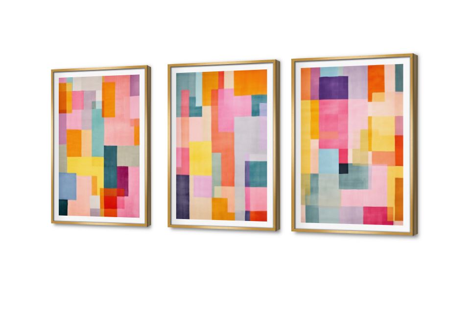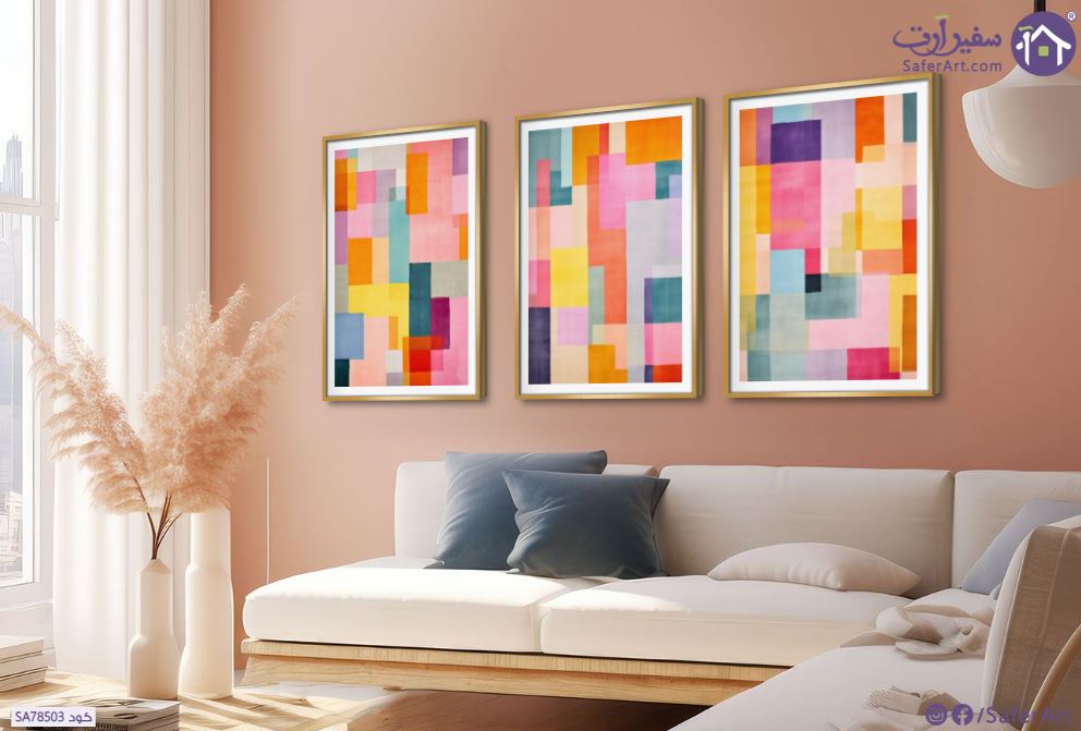 لوحات حائط متعدده القطع بتصميم من اشكال هندسيه منتظمه بالوان زاهيه و حيوية, متوفر بمقاسات متعددة يمكنك اختيار او تغيير المقاس عند الطلب ,بتصميم مميز لـ تابلوهات مودرن, تابلوهات مودرن , لوحات فنية مودرن تجريدي , التابلوه يغلب عليه الالوان متعدد الالوان, قوى و زاهى , و مصمم بالشكل التالى 3 قطع, متعدد القطع ( اى عدد ) , بالعرض, ببرواز, برواز SF9, برواز ذهبى, مستطيل , مناسب لديكور حوائط غرفة الاستقبال, غرفة المعيشة, مدخل المنزل, مكاتب – شركات - اعمال , و هو يتميز بالسمات التالية : الوان مائية, لوحات فنية, مودرن , متوفر الان فى مصر و يأتى جاهز للتركيب مع دليل التركيب و اكسسوارات التركيب اللازمه