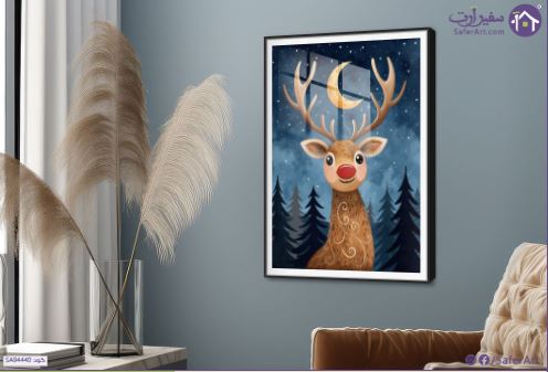 لوحة فنية تصور غزال الرنة اللطيف رودولف بأنفه الاحمر وهو يقف مبتسما في غابة من اشجار الصنوبر ليلا تحت سماء مرصعة بالنجوم وهلال القمر الساحر باسلوب فني كرتوني جذاب و الوان هادئة تضفي على المكان جوا من البهجة والدفء الخاص باجواء الشتاء و مناسبة جدا لغرف الاطفال., متوفر بمقاسات متعددة يمكنك اختيار او تغيير المقاس عند الطلب ,بتصميم مميز لـ تابلوهات مودرن, تابلوهات مودرن , لوحات فنية مودرن غزلان, حيوانات و طيور , التابلوه يغلب عليه الالوان ازرق - تركواز, اللون الواحد, الوان داكنة, بنى - بيج , و مصمم بالشكل التالى 1 قطعه , اكريليك, بالطول, ببرواز, برواز SF9, برواز اسود, مستطيل , مناسب لديكور حوائط غرفة اطفال, غرفة المعيشة , و هو يتميز بالسمات التالية : الستريشن - فيكتور, ديجيتال آرت, لوحات فنية, مودرن , متوفر الان فى مصر و يأتى جاهز للتركيب مع دليل التركيب و اكسسوارات التركيب اللازمه