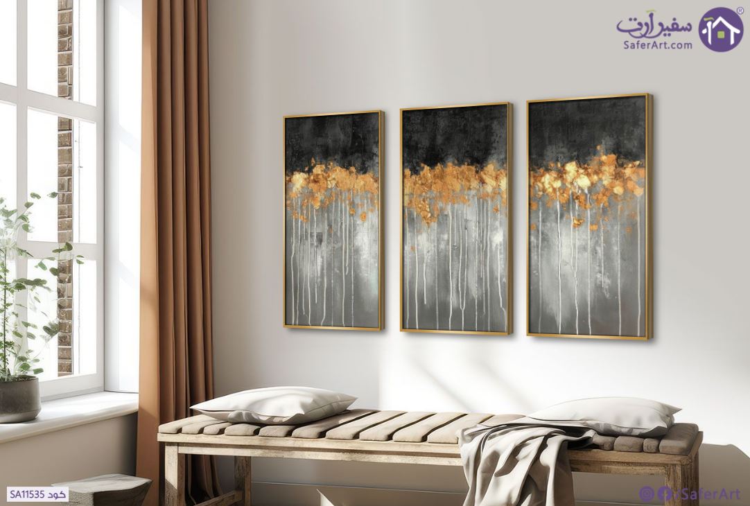 تابلوهات مودرن بتصميم متميز جدا باللون الرمادى الداكن لاشجار الغابة مع لمسات مميزة و اضافات من اللون الذهبى., متوفر بمقاسات متعددة يمكنك اختيار او تغيير المقاس عند الطلب ,بتصميم مميز لـ تابلوهات مودرن, تابلوهات مودرن , لوحات فنية مودرن غابات, تجريدي, مناظر طبيعية , التابلوه يغلب عليه الالوان فضى – ذهبى, ابيض و اسود, الوان داكنة, رمادى , و مصمم بالشكل التالى 3 قطع, متعدد القطع ( اى عدد ) , بالعرض, ببرواز, برواز ذهبى, مستطيل , مناسب لديكور حوائط غرفة الاستقبال, غرفة المعيشة, مدخل المنزل, مكاتب – شركات - اعمال , و هو يتميز بالسمات التالية : الوان زيتية - اكريليك, تماثل - سيميترى, لوحات فنية, مودرن , متوفر الان فى مصر و يأتى جاهز للتركيب مع دليل التركيب و اكسسوارات التركيب اللازمه