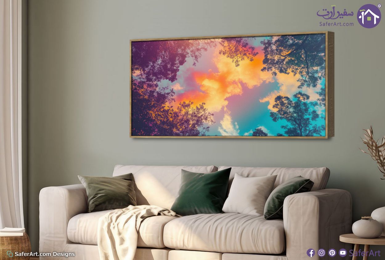 يتميز هذا التصميم الفريد بانه تابلوه مودرن يجسد مشهدا ساحرا للاشجار من زاوية سفلية وهي تعانق السماء وقت الغروب بالوان دافئة تجمع بين البرتقالي والارجواني والازرق بلمسة فنية رقمية عصرية تضفي هدوءا وجمالا طبيعيا خلابا على جدران منزلك وتبرز التفاصيل الدقيقة لاوراق الشجر المتداخلة مع السحب الملونة بشكل ابداعي راق وجذاب جدا لكل من ينظر اليه, متوفر بمقاسات متعددة يمكنك اختيار او تغيير المقاس عند الطلب ,بتصميم مميز لـ تابلوهات مودرن, تابلوهات مودرن , لوحات فنية مودرن اشجار, سحاب, مناظر طبيعية , التابلوه يغلب عليه الالوان ازرق - تركواز, برتقالى, متعدد الالوان, موف – ارجوانى , و مصمم بالشكل التالى 1 قطعه , بالعرض, ببرواز, برواز خشبى, مستطيل , مناسب لديكور حوائط غرفة الاستقبال, غرفة المعيشة, غرفة النوم, مدخل المنزل, مكاتب – شركات - اعمال , و هو يتميز بالسمات التالية : صور فوتوغرافية, مودرن , متوفر الان فى مصر و يأتى جاهز للتركيب مع دليل التركيب و اكسسوارات التركيب اللازمه