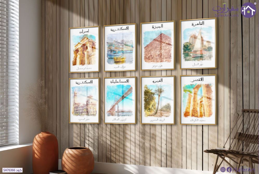 تابلوهات مودرن لمناظر مصرية , لوحات فنية باسلوب الالوان المائية مكون من ثمان قطع لاشهر معالم مصر فى محافظات مصر المختلفه, متوفر بمقاسات متعددة يمكنك اختيار او تغيير المقاس عند الطلب ,بتصميم مميز لـ تابلوهات مودرن, تابلوهات مودرن , لوحات فنية مودرن دول و مدن مشهورة, مناظر مصرية, اماكن و مدن و مباني, مصر , التابلوه يغلب عليه الالوان بنى - بيج, ازرق - تركواز , و مصمم بالشكل التالى 7 قطع او اكثر, متعدد القطع ( اى عدد ) , اكريليك, بالعرض, ببرواز, برواز ذهبى, مستطيل , مناسب لديكور حوائط غرفة المعيشة, مدخل المنزل, مكاتب – شركات - اعمال , و هو يتميز بالسمات التالية : الوان مائية, دول البحر المتوسط, لوحات فنية, مودرن , متوفر الان فى مصر و يأتى جاهز للتركيب مع دليل التركيب و اكسسوارات التركيب اللازمه