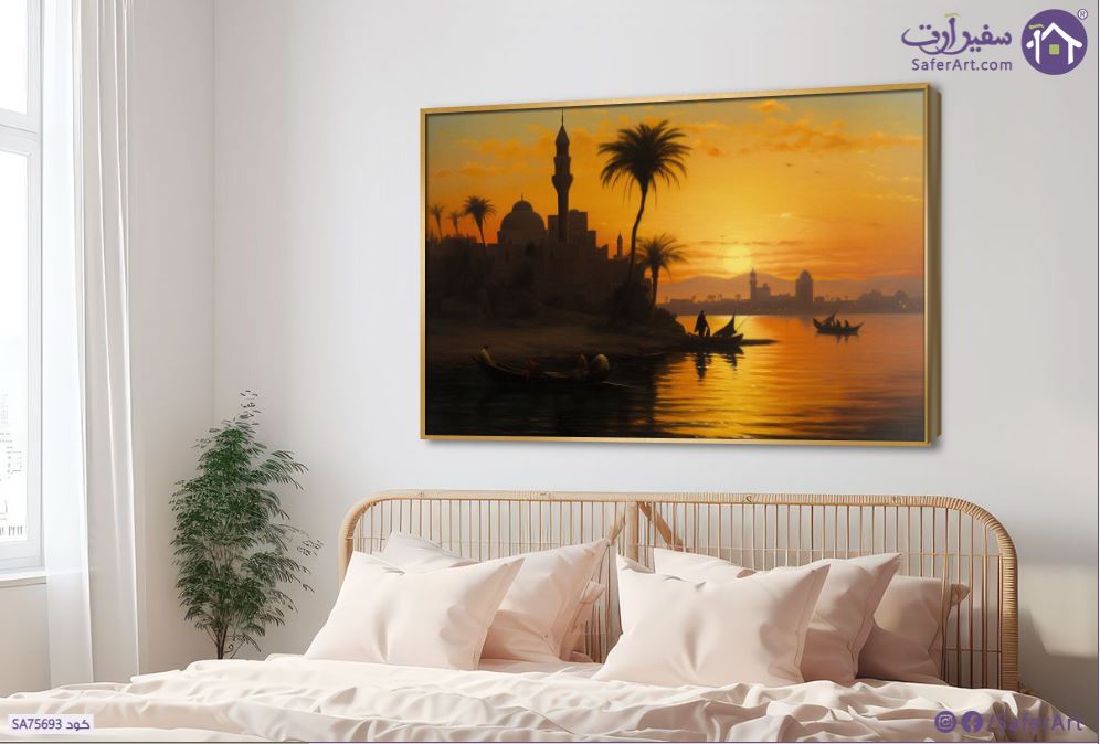 تابلوه مودرن لقرية مصرية فى وقت الغروب على ضفاف النيل و يظهر بها بعض القوارب و المنازل المصرية, متوفر بمقاسات متعددة يمكنك اختيار او تغيير المقاس عند الطلب ,بتصميم مميز لـ تابلوهات مودرن, تابلوهات مودرن , لوحات فنية مودرن مناظر مصرية, مصر , التابلوه يغلب عليه الالوان اصفر, اسود, الوان داكنة, برتقالى , و مصمم بالشكل التالى 1 قطعه , بالعرض, ببرواز, برواز ذهبى, مستطيل , مناسب لديكور حوائط غرفة الاستقبال, غرفة المعيشة, مكاتب – شركات - اعمال , و هو يتميز بالسمات التالية : الوان زيتية - اكريليك, دول البحر المتوسط, كلاسيك – نيو كلاسيك, لوحات فنية, مودرن , متوفر الان فى مصر و يأتى جاهز للتركيب مع دليل التركيب و اكسسوارات التركيب اللازمه