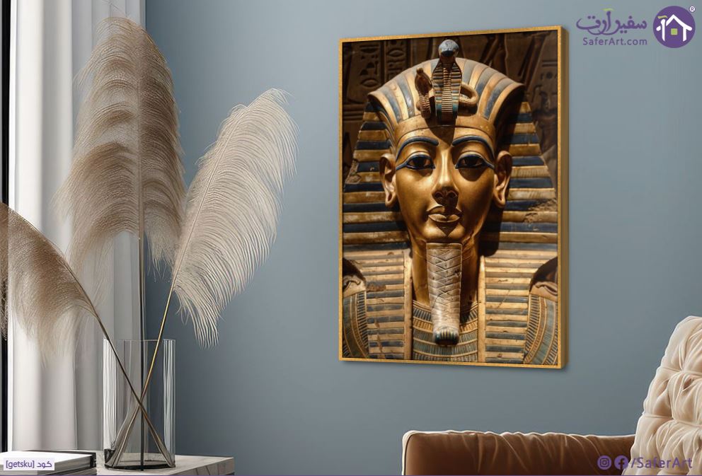 تابلوه فرعوني، صورة لآشهر الوجوه المصرية القديمة الملك الفرعوني توت عنخ آمون بحلته الذهبية المميزة., متوفر بمقاسات متعددة يمكنك اختيار او تغيير المقاس عند الطلب ,بتصميم مميز لـ تابلوهات مودرن, تابلوهات مودرن , لوحات فنية مودرن مصر الفرعونية, مصر القديمة, مناظر مصرية, مصر , التابلوه يغلب عليه الالوان بنى - بيج, فضى – ذهبى , و مصمم بالشكل التالى 1 قطعه , بالطول, ببرواز, برواز ذهبى, مستطيل , مناسب لديكور حوائط مدخل المنزل, مكاتب – شركات - اعمال , و هو يتميز بالسمات التالية : ديجيتال آرت, لوحات فنية , متوفر الان فى مصر و يأتى جاهز للتركيب مع دليل التركيب و اكسسوارات التركيب اللازمه