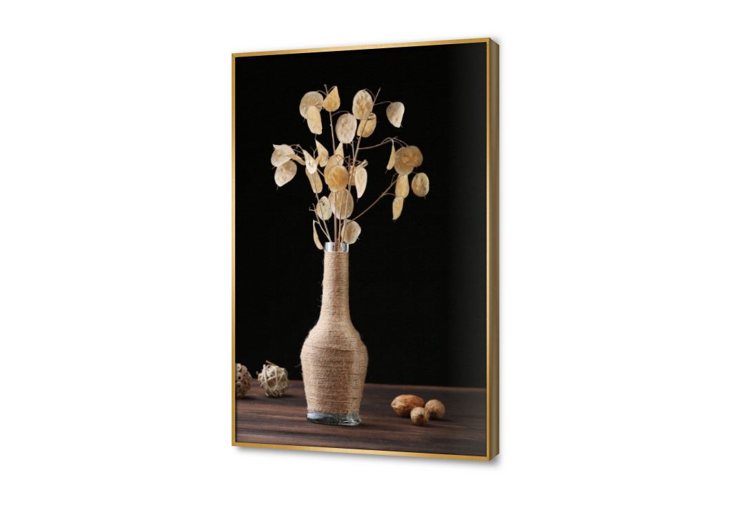 يمثل هذا التصميم تابلوه مودرن يجمع بين البساطة الريفية والاناقة العصرية من خلال تصوير فوتوغرافي بأسلوب الطبيعة الصامتة يبرز تفاصيل زجاجة ملفوفة بخيوط الخيش تضم أغصان نباتية مجففة فوق سطح خشبي دافئ وخلفية سوداء عميقة تمنح المشهد عمقا بصريا وتركيزا عاليا على الملامس الطبيعية المتنوعة بتباين لوني جذاب يضيف لمسة من الهدوء والجمال لاي فراغ داخلي, متوفر بمقاسات متعددة يمكنك اختيار او تغيير المقاس عند الطلب ,بتصميم مميز لـ تابلوهات مودرن, تابلوهات مودرن , لوحات فنية مودرن اوراق شجر - نباتات, فازات و اوانى, طبيعه صامتة, ورود - زهور - نباتات , التابلوه يغلب عليه الالوان اسود, الوان داكنة, بنى - بيج , و مصمم بالشكل التالى 1 قطعه , بالطول, ببرواز, برواز ذهبى, مستطيل , مناسب لديكور حوائط غرفة الاستقبال, غرفة الطعام - المطبخ, غرفة المعيشة, غرفة النوم, مدخل المنزل, مكاتب – شركات - اعمال , و هو يتميز بالسمات التالية : بسيط و هادئ, بوهو ستايل, صور فوتوغرافية, مودرن , متوفر الان فى مصر و يأتى جاهز للتركيب مع دليل التركيب و اكسسوارات التركيب اللازمه
