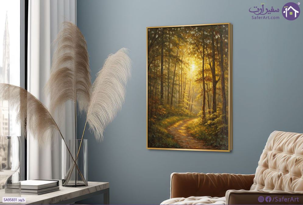 تابلوه مودرن يصور ببراعة مسار متعرج داخل غابة كثيفة حيث تتسلل اشعة الشمس الذهبية الدافئة من بين الاشجار العالية لتضيء الطريق واوراق الشجر المتساقطة باسلوب انطباعي كلاسيكي يستخدم ضربات الفرشاة الواضحة والالوان الزيتية الغنية لخلق مشهد طبيعي ساحر يبعث على الهدوء والسكينة ويضيف لمسة فنية راقية لديكور منزلك., متوفر بمقاسات متعددة يمكنك اختيار او تغيير المقاس عند الطلب ,بتصميم مميز لـ تابلوهات مودرن, تابلوهات مودرن , لوحات فنية مودرن اشجار, غابات, مناظر طبيعية , التابلوه يغلب عليه الالوان اخضر - زيتى, اصفر, برتقالى, بنى - بيج, قوى و زاهى , و مصمم بالشكل التالى 1 قطعه , بالطول, ببرواز, برواز ذهبى, مستطيل , مناسب لديكور حوائط غرفة الاستقبال, غرفة المعيشة, مدخل المنزل, مكاتب – شركات - اعمال , و هو يتميز بالسمات التالية : الوان زيتية - اكريليك, عتيق - فينتاج, كلاسيك – نيو كلاسيك, لوحات فنية, مظهر بارز , متوفر الان فى مصر و يأتى جاهز للتركيب مع دليل التركيب و اكسسوارات التركيب اللازمه