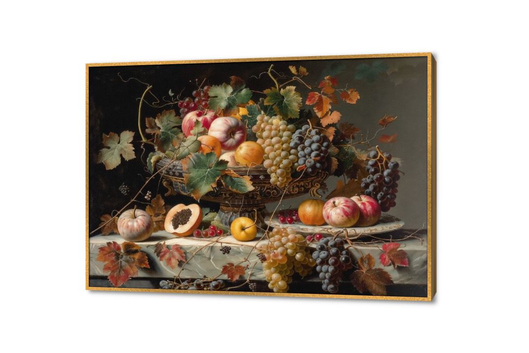 برواز ديكور ، طبق مليئ بأنواع مختلفة من الفاكهة على ترابيزة بلون غامق ، تابلوه مناسب لغرف الطعام والمطابخ., متوفر بمقاسات متعددة يمكنك اختيار او تغيير المقاس عند الطلب ,بتصميم مميز لـ تابلوهات مودرن, تابلوهات مودرن , لوحات فنية مودرن فواكه, مشروبات – اطعمة - المطبخ , التابلوه يغلب عليه الالوان اخضر - زيتى, الوان داكنة, برتقالى, بنى - بيج , و مصمم بالشكل التالى 1 قطعه , بالعرض, ببرواز, برواز ذهبى, مستطيل , مناسب لديكور حوائط غرفة الطعام - المطبخ , و هو يتميز بالسمات التالية : عتيق - فينتاج, كلاسيك – نيو كلاسيك, لوحات فنية , متوفر الان فى مصر و يأتى جاهز للتركيب مع دليل التركيب و اكسسوارات التركيب اللازمه