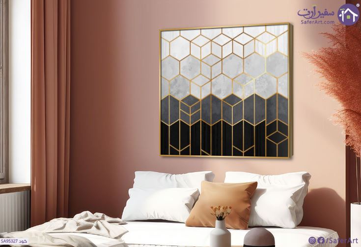 تجسد هذه اللوحة الفنية جمال التصميم التجريدي الحديث حيث تتداخل الأشكال الهندسية السداسية والمكعبات المحددة بخطوط ذهبية براقة على خلفية ذات تدرج لوني من الأبيض والرمادي إلى الأسود العميق، مما يجعلها تابلوه حائط يضيف لمسة من الفخامة والرقي والأناقة المعاصرة لأي ديكور، ويعبر عن الذوق الرفيع من خلال بساطته الهندسية وتوازنه اللوني المتقن., متوفر بمقاسات متعددة يمكنك اختيار او تغيير المقاس عند الطلب ,بتصميم مميز لـ تابلوهات مودرن, تابلوهات مودرن , لوحات فنية مودرن اشكال هندسية و زخارف , التابلوه يغلب عليه الالوان ابيض و اسود, اسود, اللون الواحد, رمادى, فضى – ذهبى , و مصمم بالشكل التالى 1 قطعه , ببرواز, برواز خشبى, مربع , مناسب لديكور حوائط غرفة الاستقبال, غرفة المعيشة, مدخل المنزل, مكاتب – شركات - اعمال , و هو يتميز بالسمات التالية : اشكال هندسية و زخارف, الستريشن - فيكتور, تماثل - سيميترى, ديجيتال آرت, مربعات, مودرن , متوفر الان فى مصر و يأتى جاهز للتركيب مع دليل التركيب و اكسسوارات التركيب اللازمه