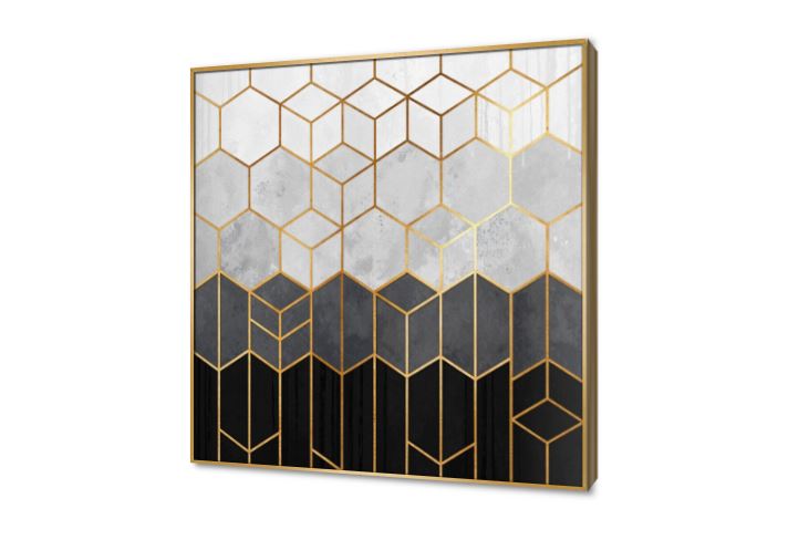 تجسد هذه اللوحة الفنية جمال التصميم التجريدي الحديث حيث تتداخل الأشكال الهندسية السداسية والمكعبات المحددة بخطوط ذهبية براقة على خلفية ذات تدرج لوني من الأبيض والرمادي إلى الأسود العميق، مما يجعلها تابلوه حائط يضيف لمسة من الفخامة والرقي والأناقة المعاصرة لأي ديكور، ويعبر عن الذوق الرفيع من خلال بساطته الهندسية وتوازنه اللوني المتقن., متوفر بمقاسات متعددة يمكنك اختيار او تغيير المقاس عند الطلب ,بتصميم مميز لـ تابلوهات مودرن, تابلوهات مودرن , لوحات فنية مودرن اشكال هندسية و زخارف , التابلوه يغلب عليه الالوان ابيض و اسود, اسود, اللون الواحد, رمادى, فضى – ذهبى , و مصمم بالشكل التالى 1 قطعه , ببرواز, برواز خشبى, مربع , مناسب لديكور حوائط غرفة الاستقبال, غرفة المعيشة, مدخل المنزل, مكاتب – شركات - اعمال , و هو يتميز بالسمات التالية : اشكال هندسية و زخارف, الستريشن - فيكتور, تماثل - سيميترى, ديجيتال آرت, مربعات, مودرن , متوفر الان فى مصر و يأتى جاهز للتركيب مع دليل التركيب و اكسسوارات التركيب اللازمه